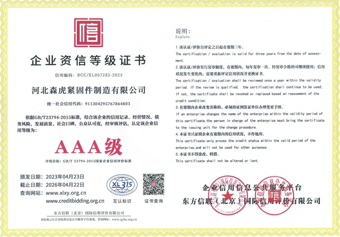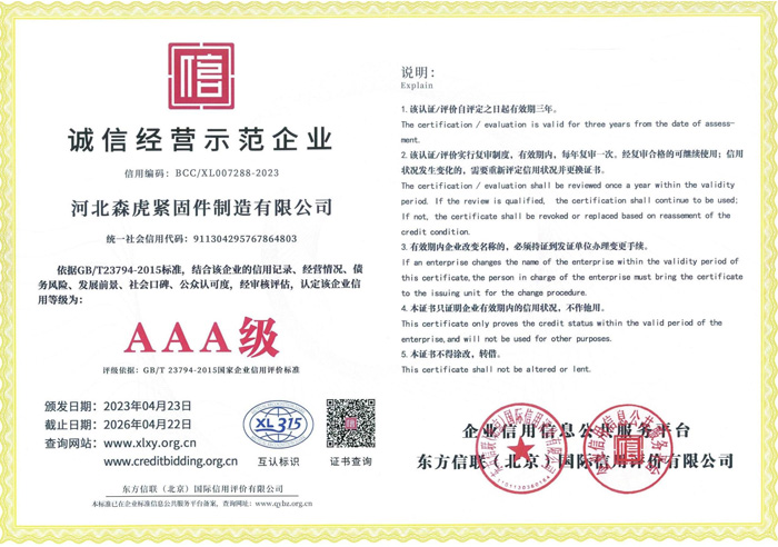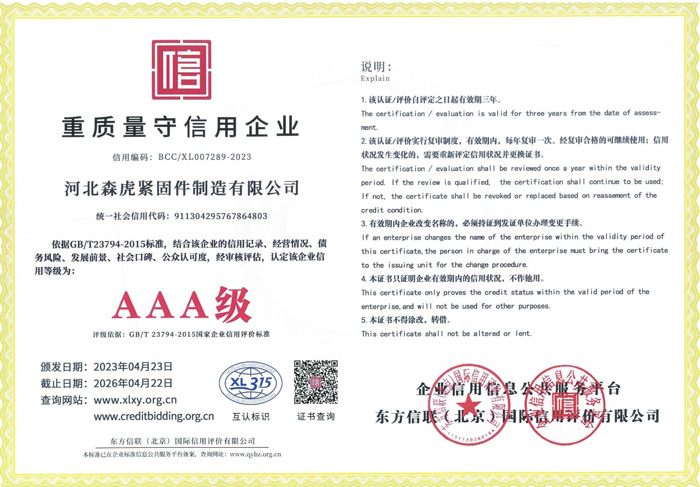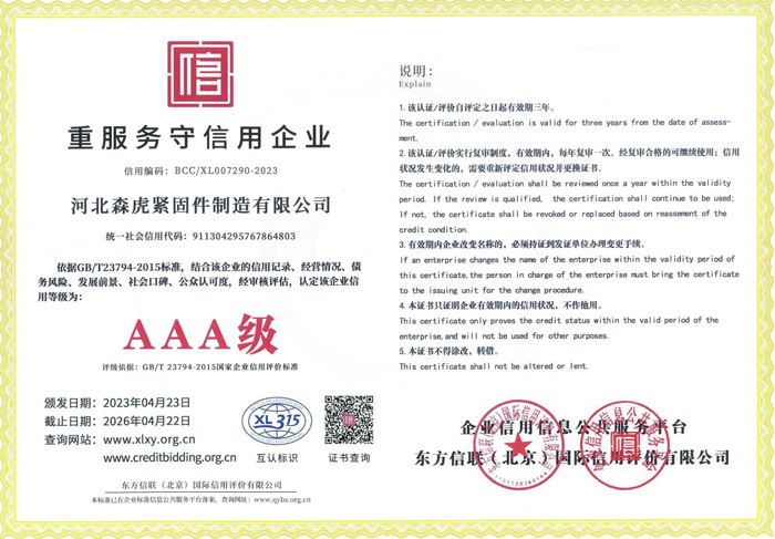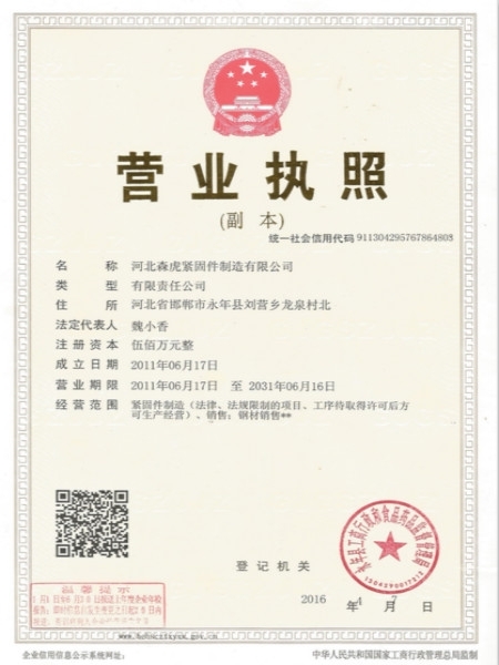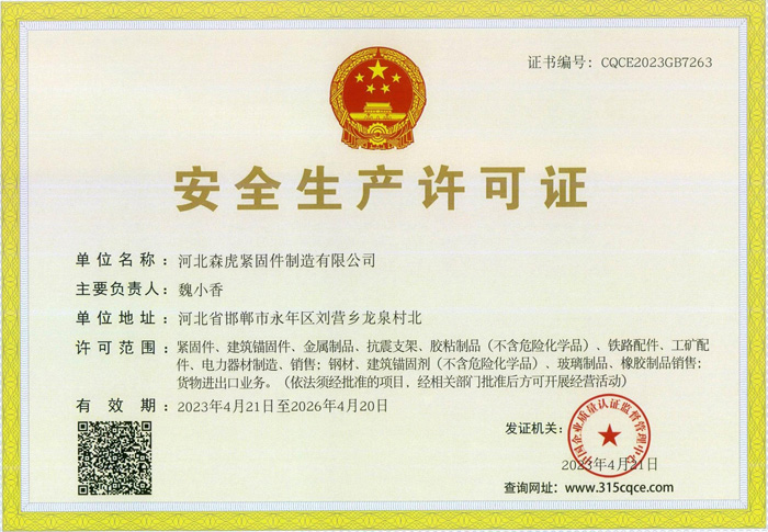 河北森虎緊固件制造有限公司成立于2011年,是建廠較早的緊固件企業(yè)。西臨京廣線,東臨京深高速,地理位置優(yōu)越,交通便利。 主要生產(chǎn):化學(xué)錨栓、機械錨栓、定型化學(xué)錨栓、高強度8.8級化學(xué)錨栓、自切底機械錨栓、車修壁虎,膨脹螺栓,植筋膠。 質(zhì)量方針:先進(jìn)技術(shù)、科學(xué)管理、優(yōu)良品質(zhì)、用戶滿意; ...
